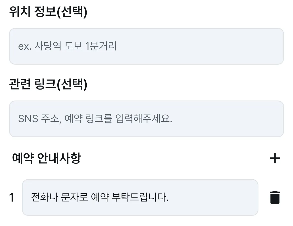 관련 링크는 SNS 주소, 네이버 예약 링크를 적어주시면 사용자들이 바로 이동할 수 있어요.