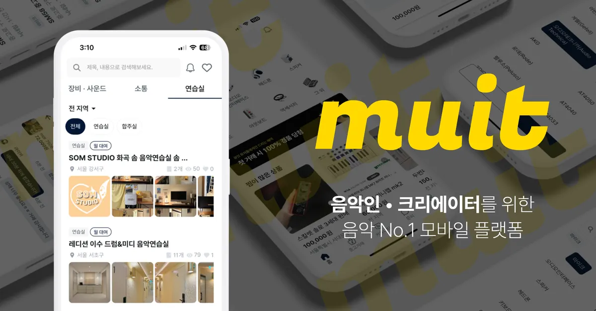 전국의 보컬, 크리에이터, 작곡가, 연주자와 함께하는 음악인 라이프 플랫폼 뮤잇에서 효율적으로 연습실을 홍보해보세요!